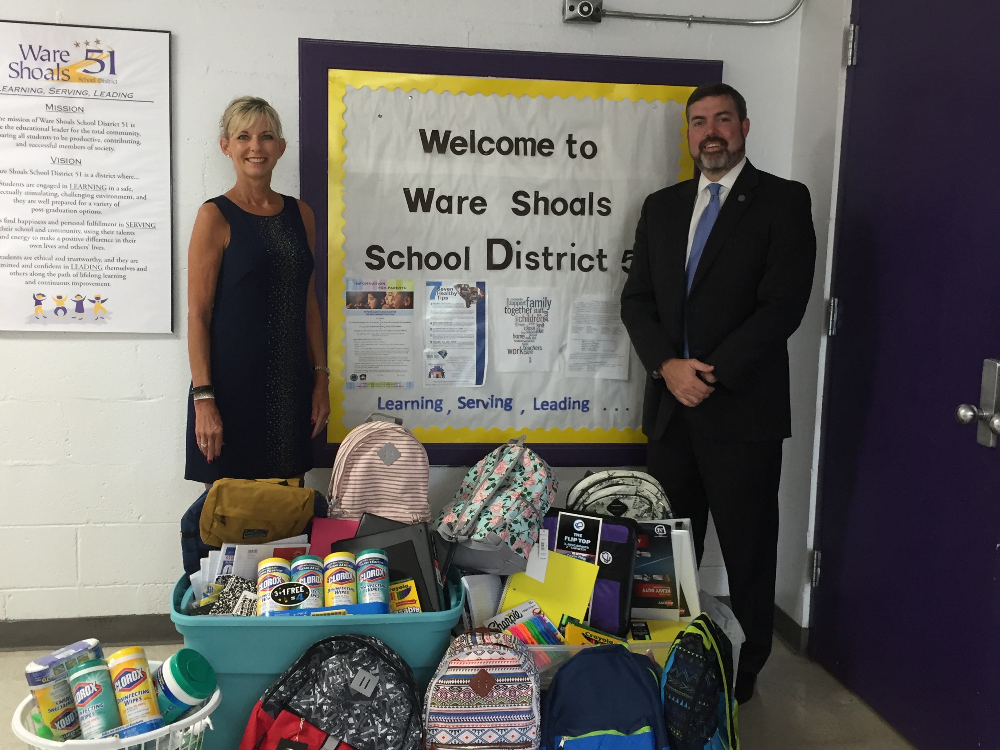 Solicitor distributes school supplies