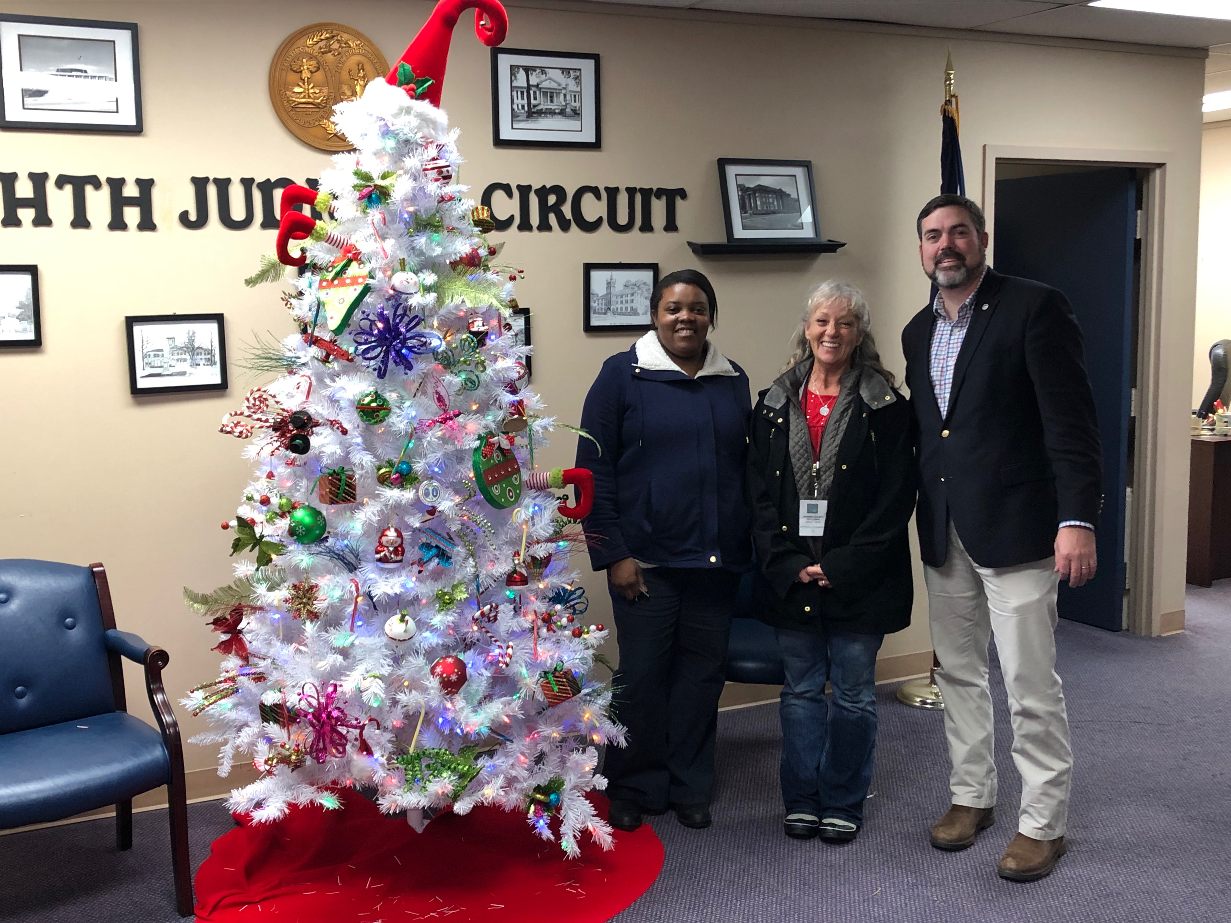 Pictured, from left to right, are Tiera Moore and Sandy Webb of Laurens SAFE Home and 8TH Circuit Solicitor David M. Stumbo.